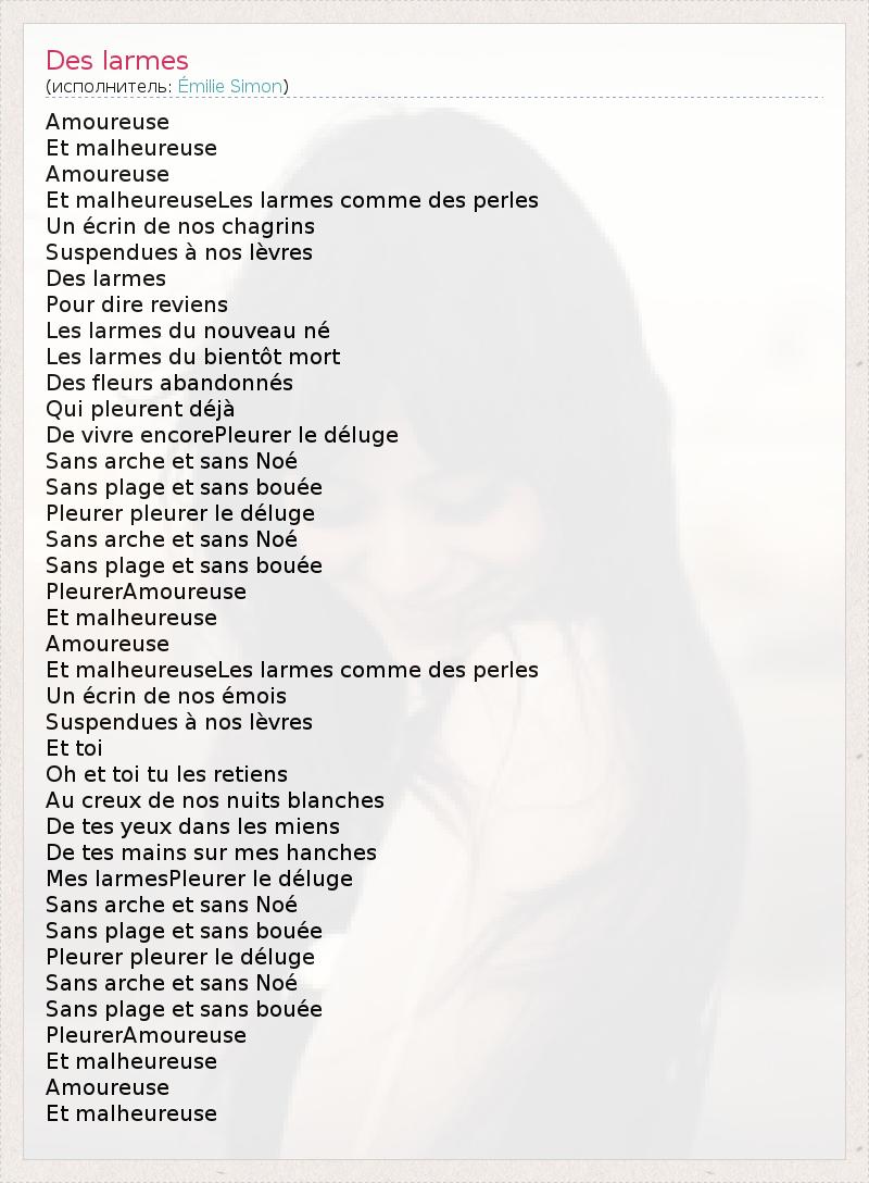 А как ты думаешь, о чем песня "Des larmes" ?