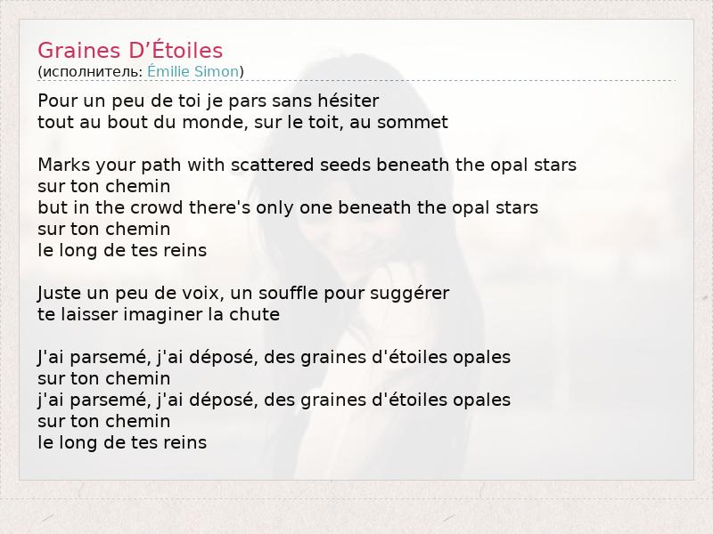 А как ты думаешь, о чем песня "Graines D’Étoiles" ?