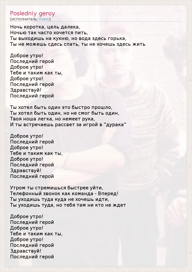 А как ты думаешь, о чем песня "Posledniy geroy" ?