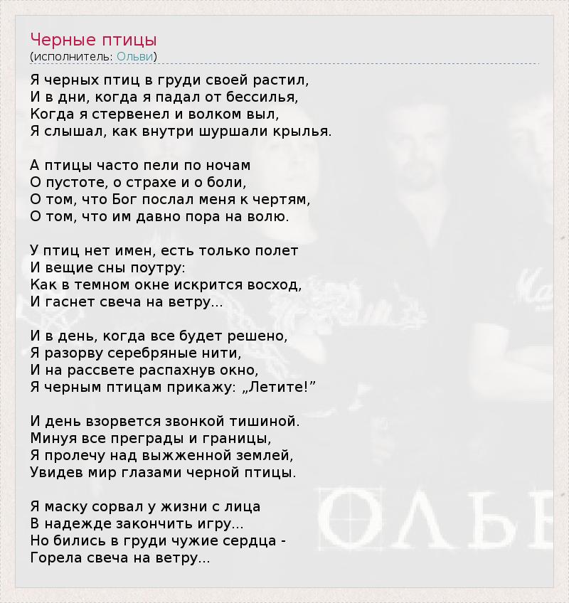 А как ты думаешь, о чем песня "Черные птицы" ?