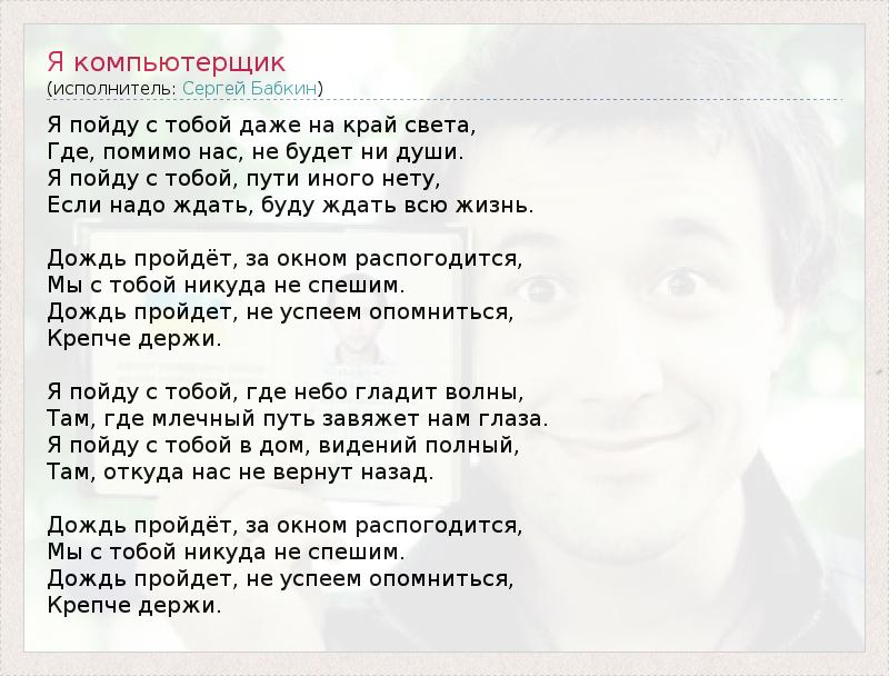 А как ты думаешь, о чем песня "Я компьютерщик" ?