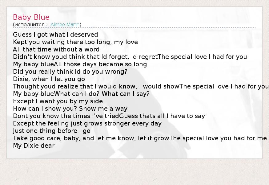 А как ты думаешь, о чем песня "Baby Blue" ?