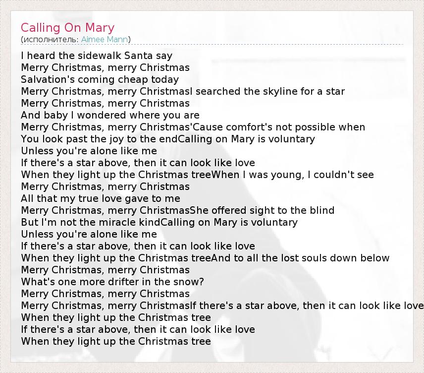 А как ты думаешь, о чем песня "Calling On Mary" ?