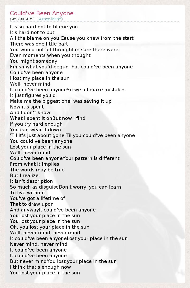 А как ты думаешь, о чем песня "Could've Been Anyone" ?