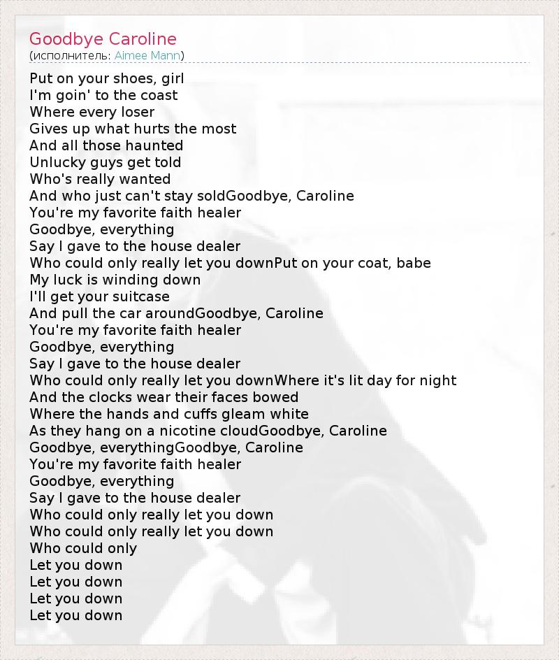 А как ты думаешь, о чем песня "Goodbye Caroline" ?