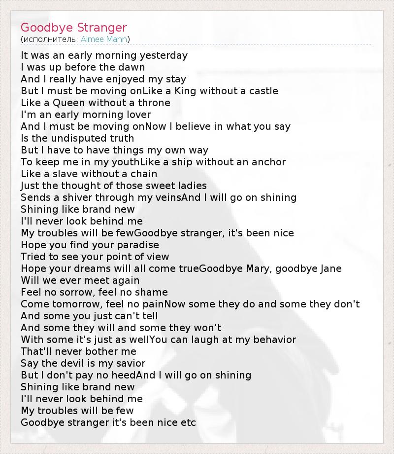 А как ты думаешь, о чем песня "Goodbye Stranger" ?