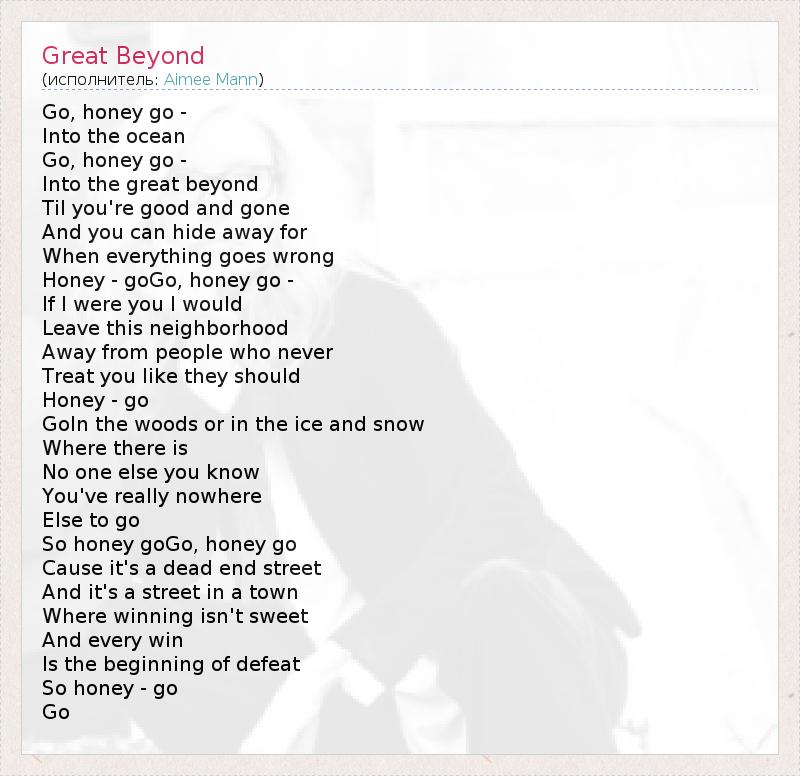 А как ты думаешь, о чем песня "Great Beyond" ?