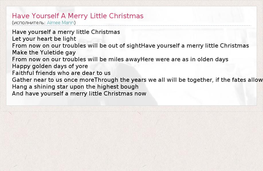 ГлавнаяИсполнителиAimee MannHave Yourself A Merry Little Christmas