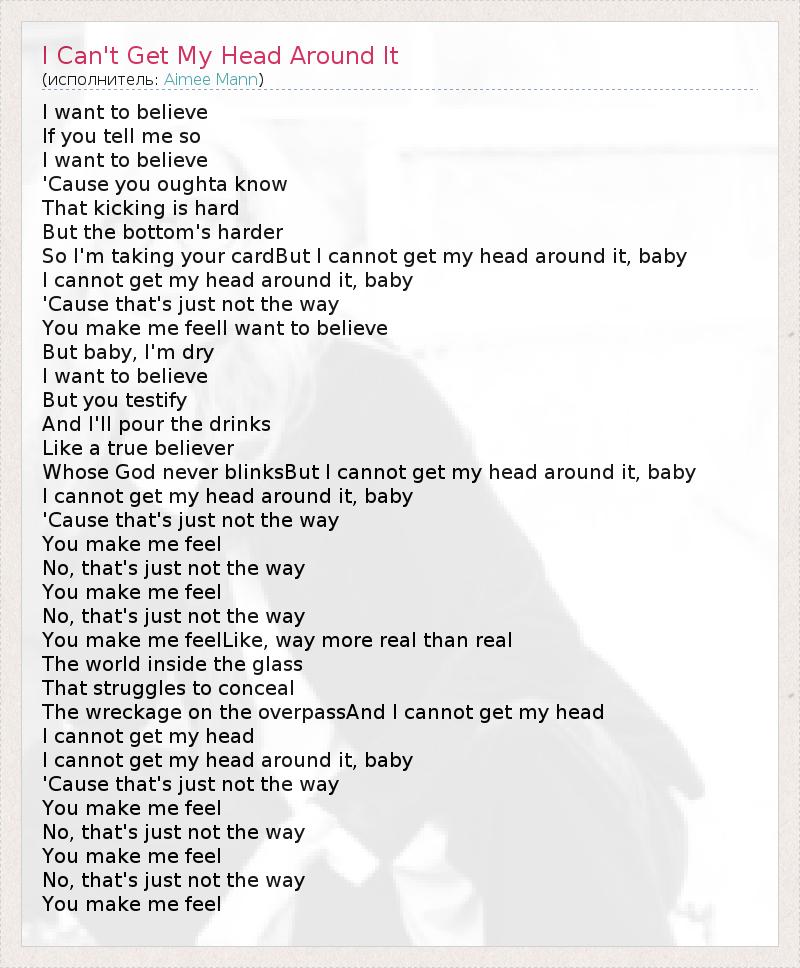 ГлавнаяИсполнителиAimee MannI Can't Get My Head Around It