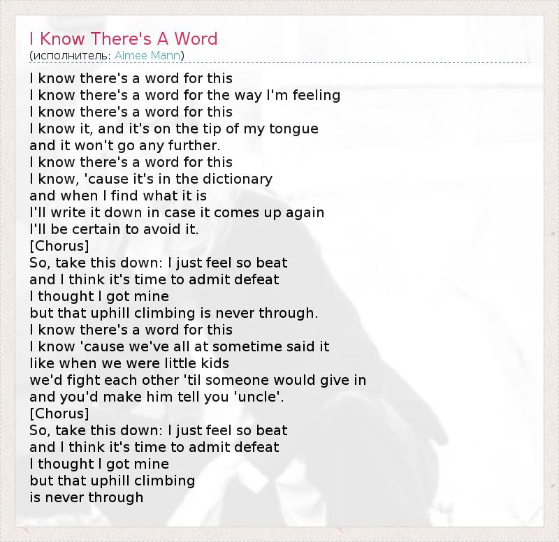 А как ты думаешь, о чем песня "I Know There's A Word" ?