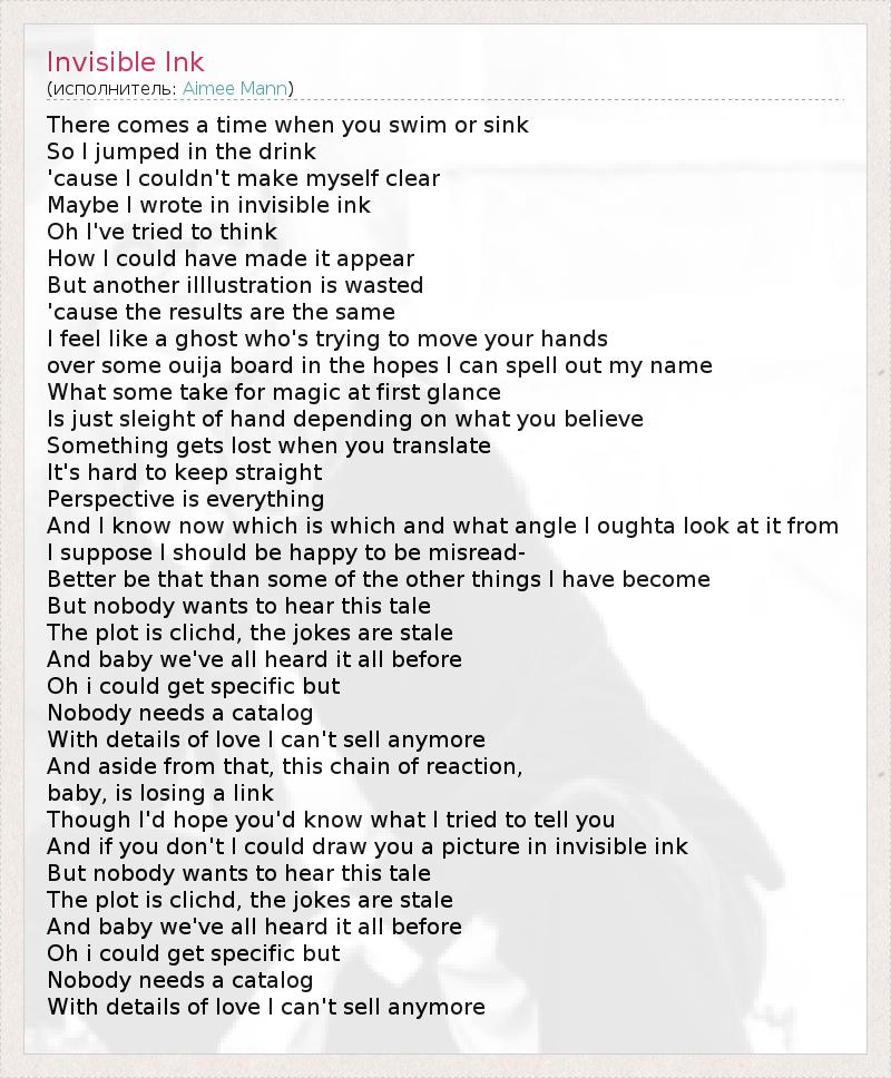 А как ты думаешь, о чем песня "Invisible Ink" ?