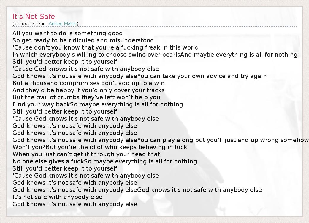 А как ты думаешь, о чем песня "It's Not Safe" ?