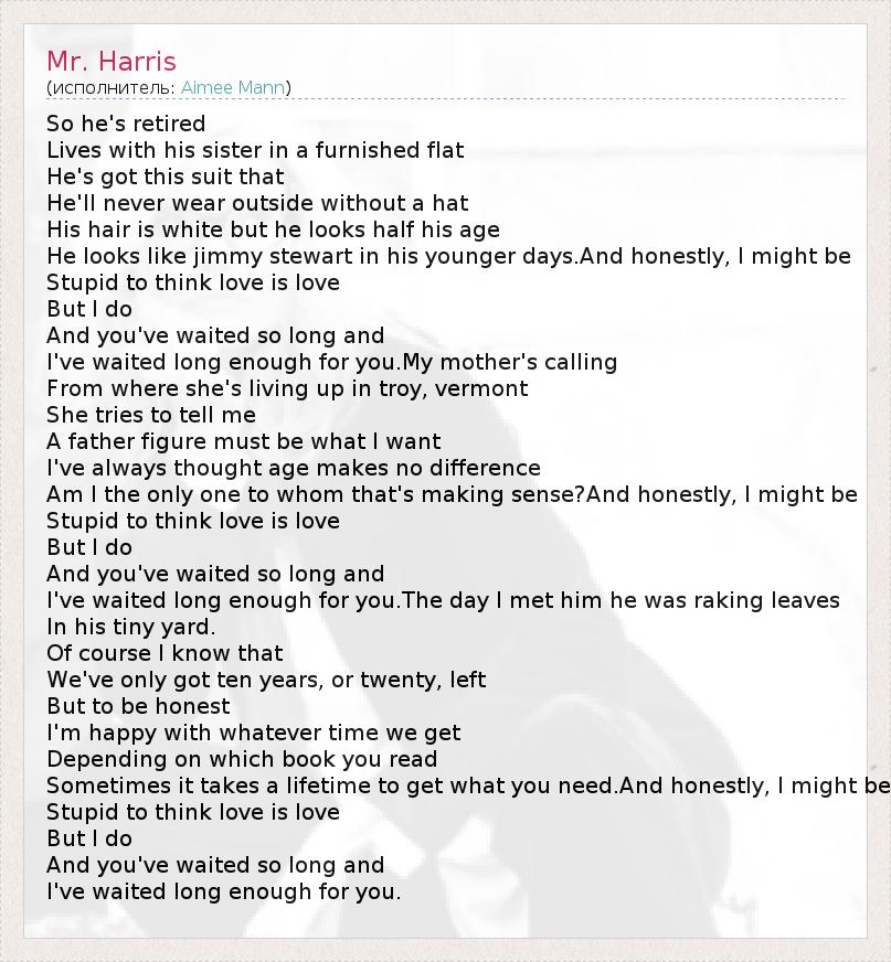 А как ты думаешь, о чем песня "Mr. Harris" ?