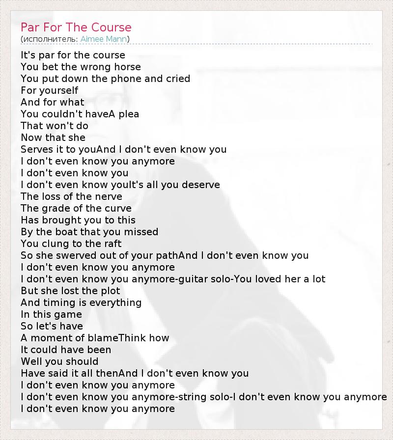 А как ты думаешь, о чем песня "Par For The Course" ?