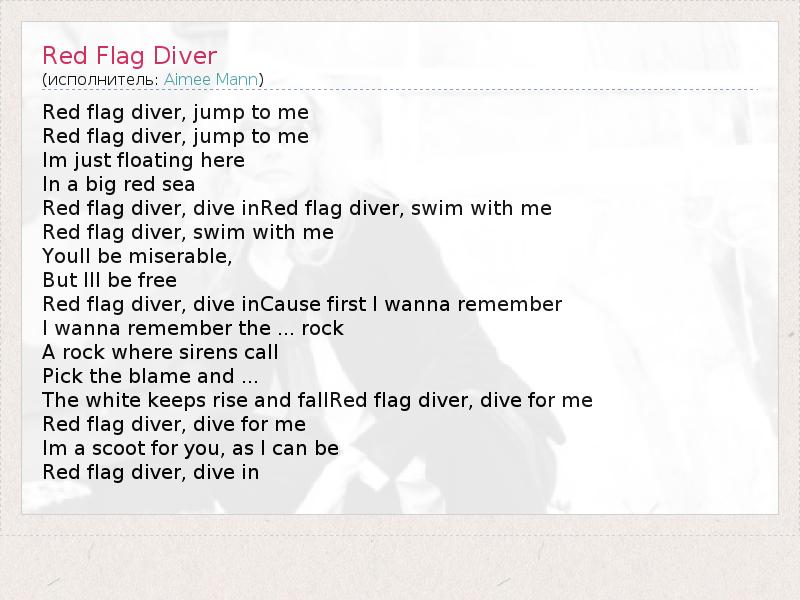А как ты думаешь, о чем песня "Red Flag Diver" ?