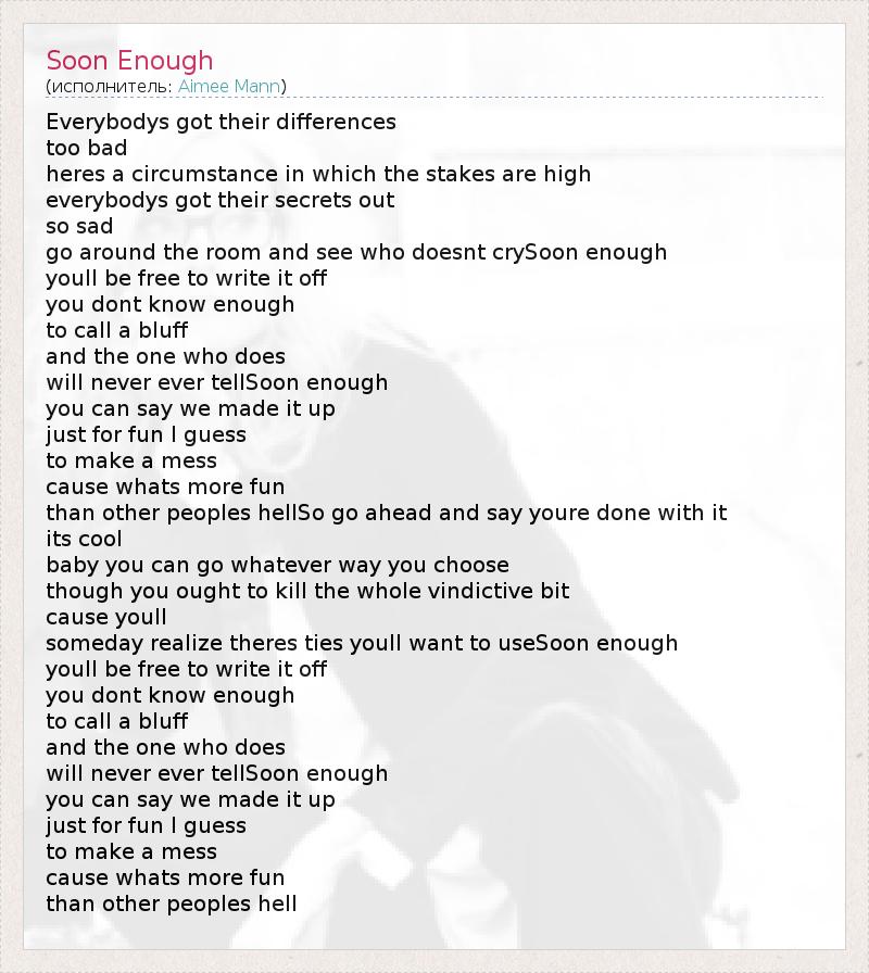А как ты думаешь, о чем песня "Soon Enough" ?