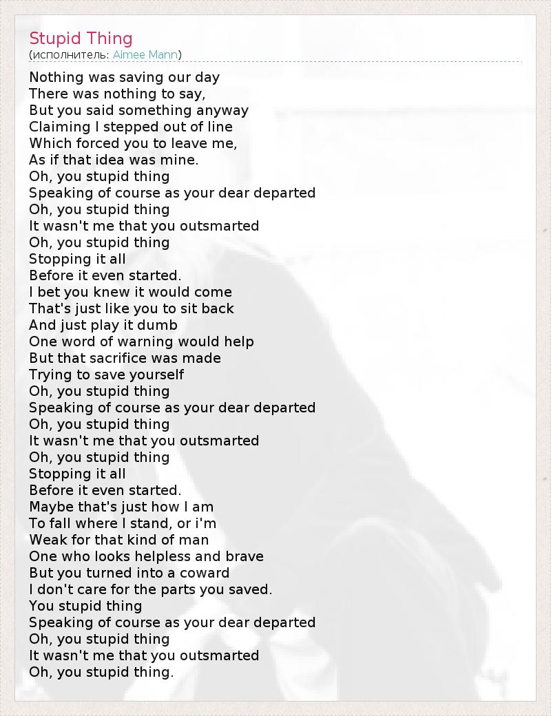 А как ты думаешь, о чем песня "Stupid Thing" ?