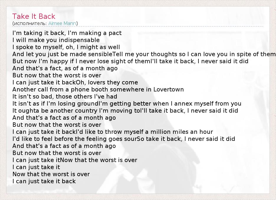 I'd like to feel before the feeling goes sourSo take it back, I never said it did