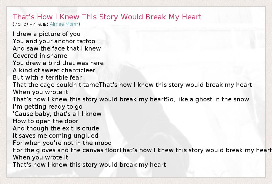А как ты думаешь, о чем песня "That's How I Knew This Story Would Break My Heart" ?