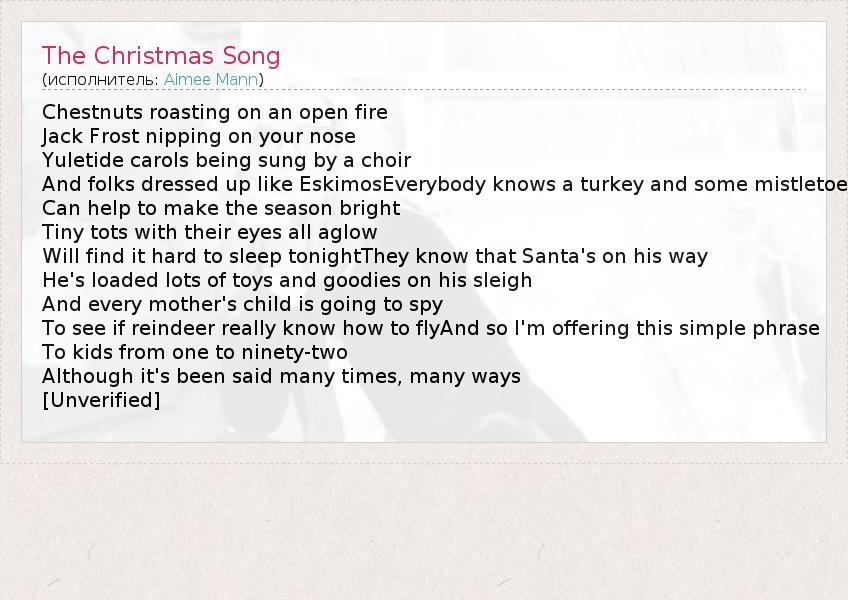 А как ты думаешь, о чем песня "The Christmas Song" ?