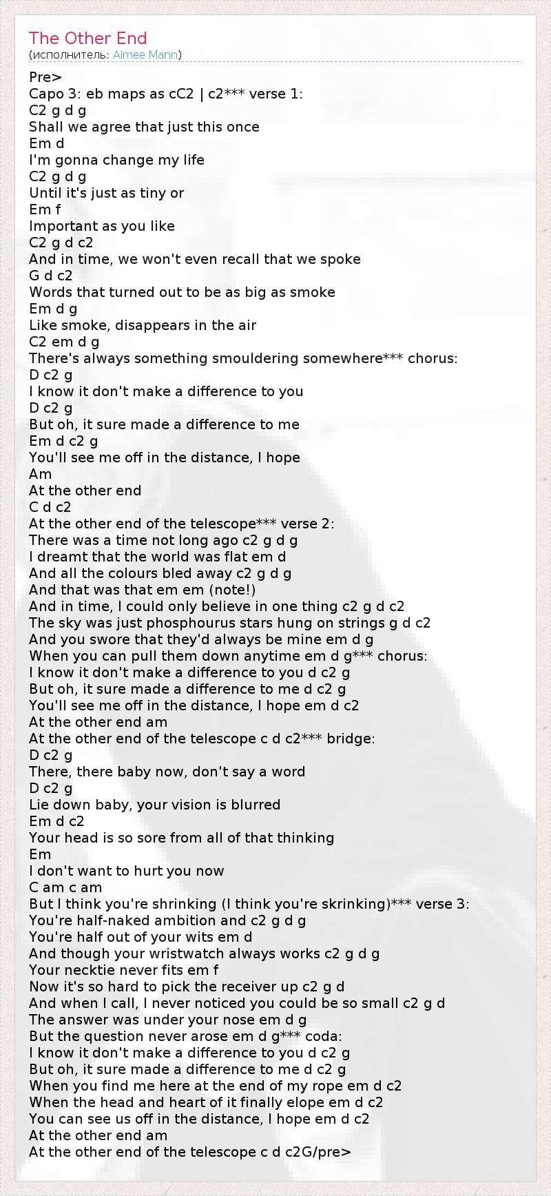 А как ты думаешь, о чем песня "The Other End" ?