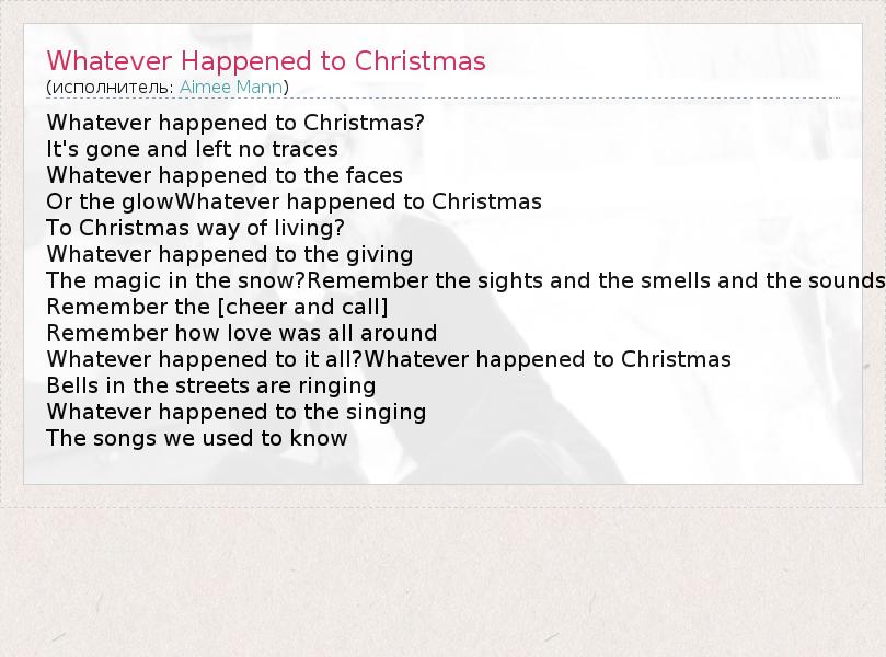 А как ты думаешь, о чем песня "Whatever Happened to Christmas" ?