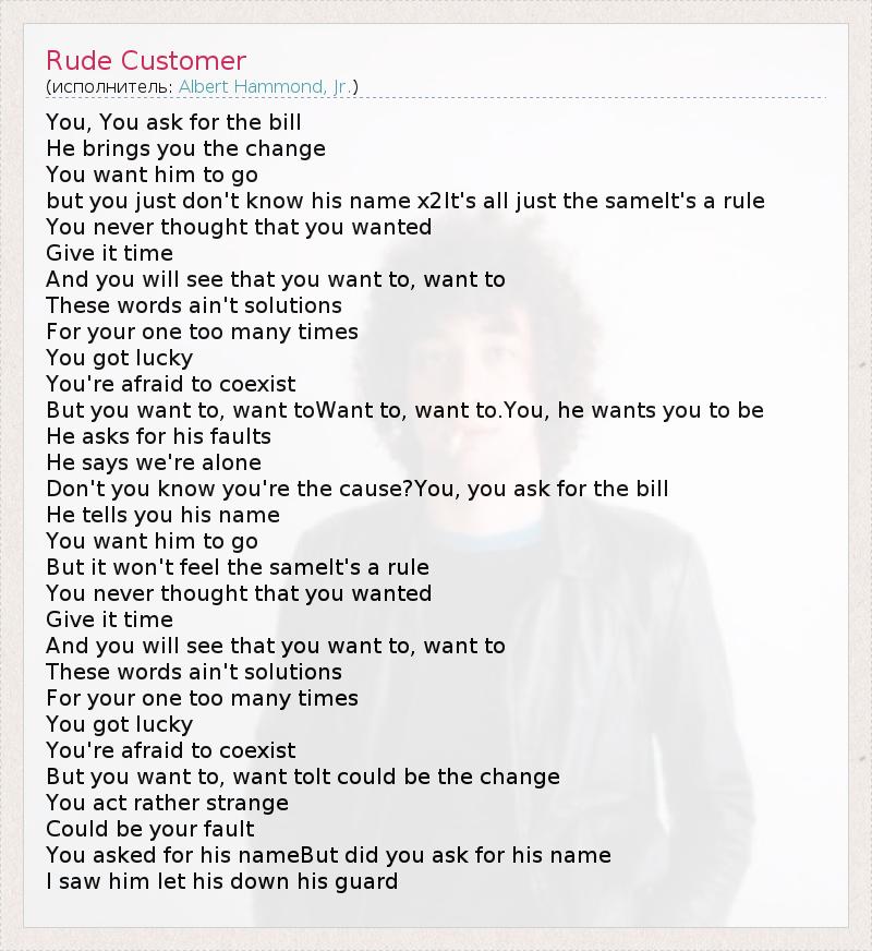 А как ты думаешь, о чем песня "Rude Customer" ?