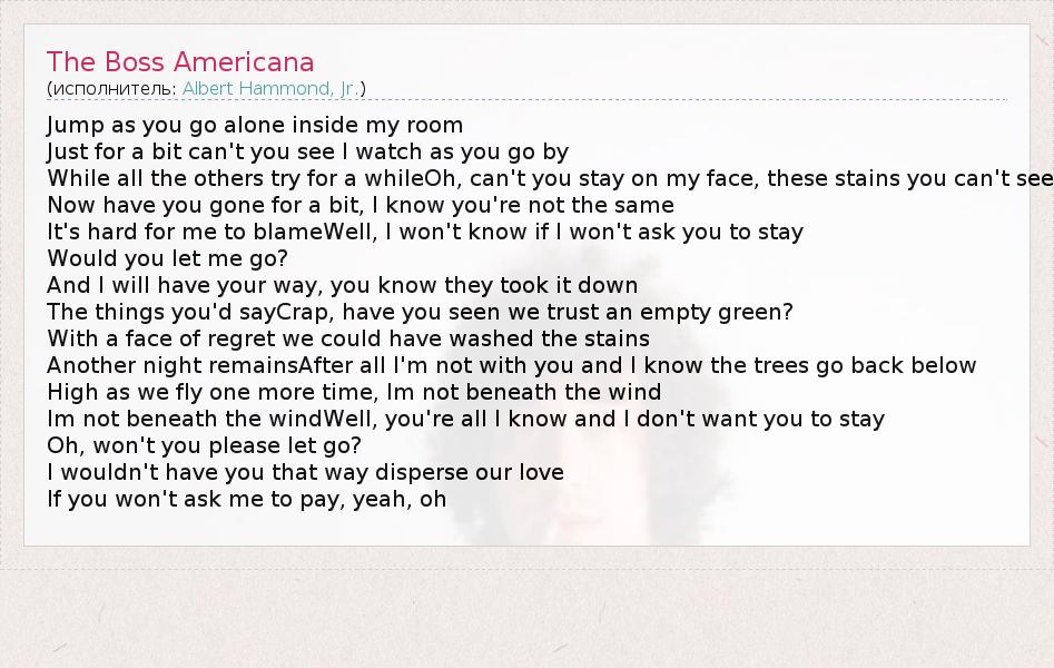 А как ты думаешь, о чем песня "The Boss Americana" ?