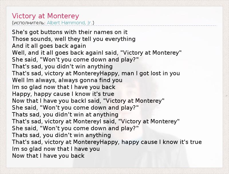 А как ты думаешь, о чем песня "Victory at Monterey" ?