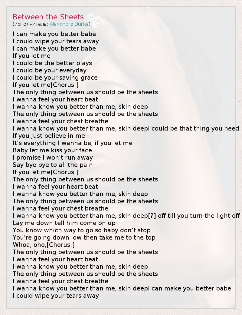 А как ты думаешь, о чем песня "Between the Sheets" ?