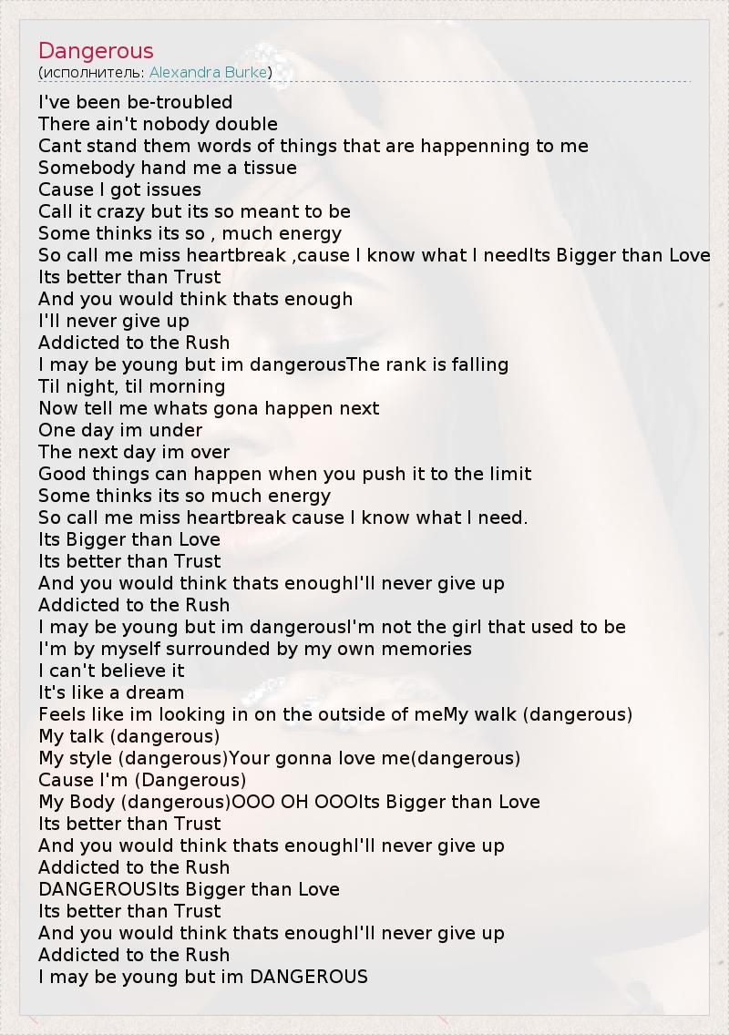 А как ты думаешь, о чем песня "Dangerous" ?