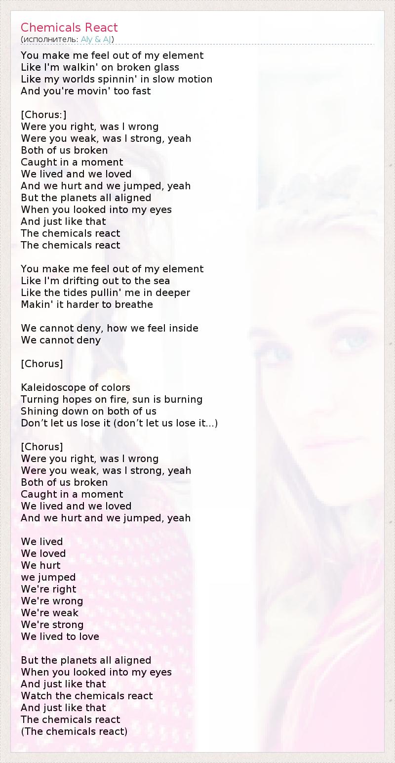 А как ты думаешь, о чем песня "Chemicals React" ?