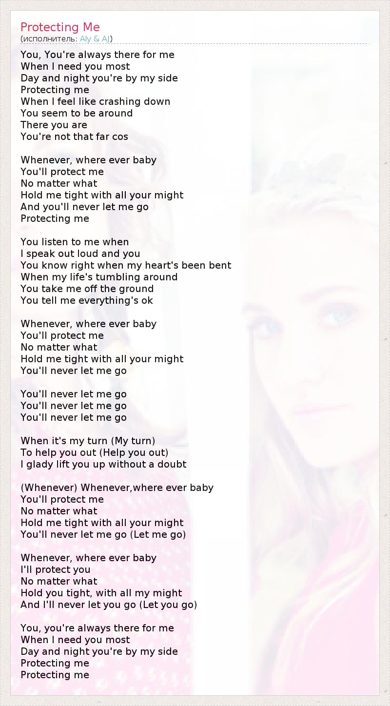 А как ты думаешь, о чем песня "Protecting Me" ?