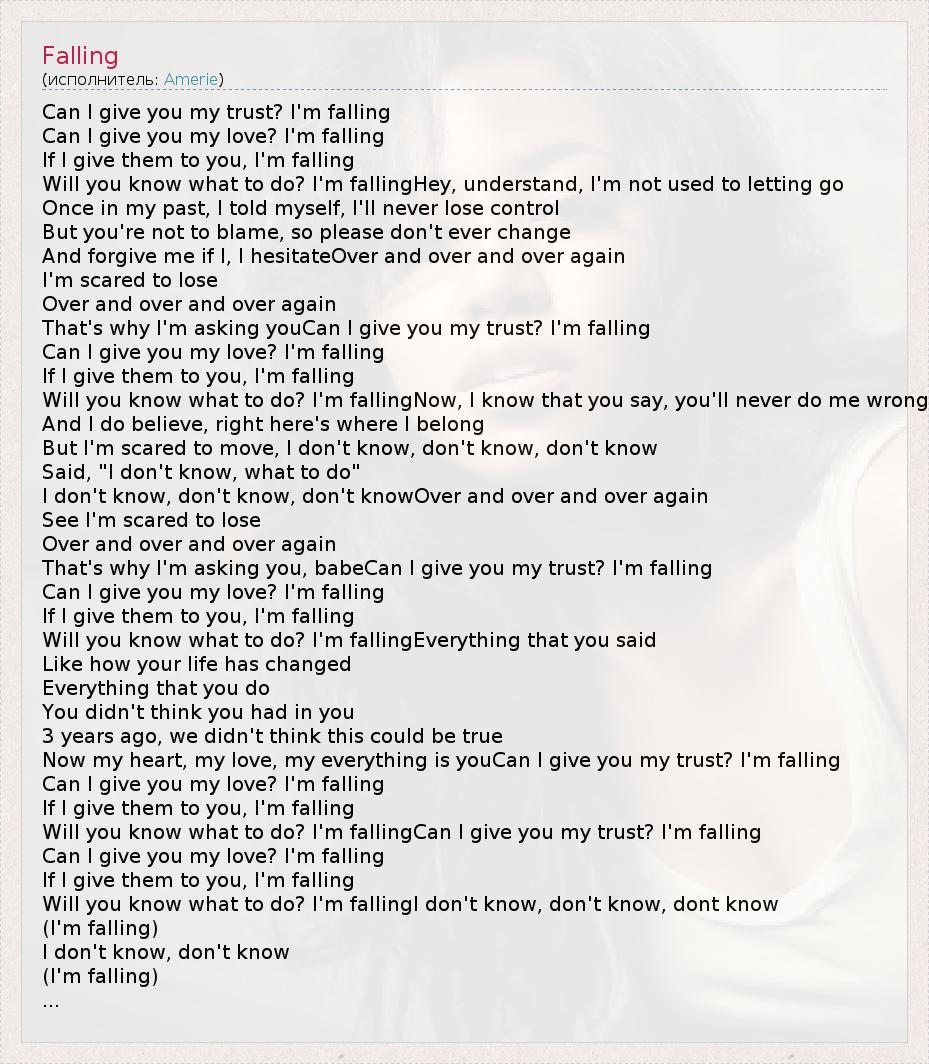 Now my heart, my love, my everything is youCan I give you my trust? I'm falling