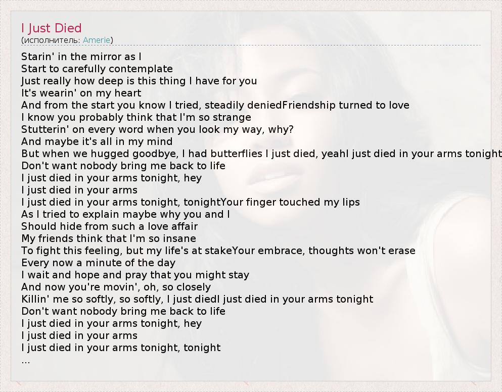 Killin' me so softly, so softly, I just diedI just died in your arms tonight