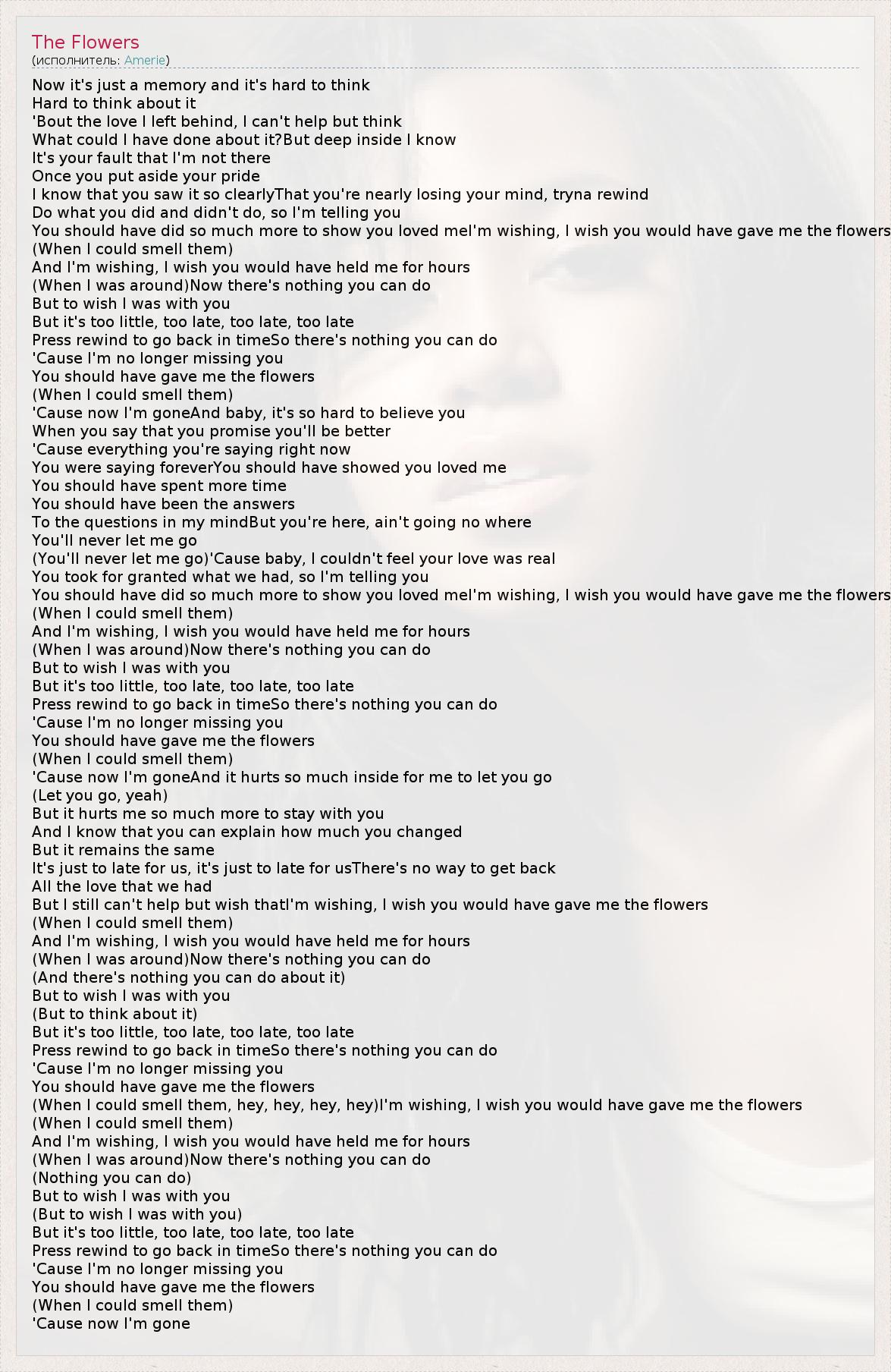 But I still can't help but wish thatI'm wishing, I wish you would have gave me the flowers