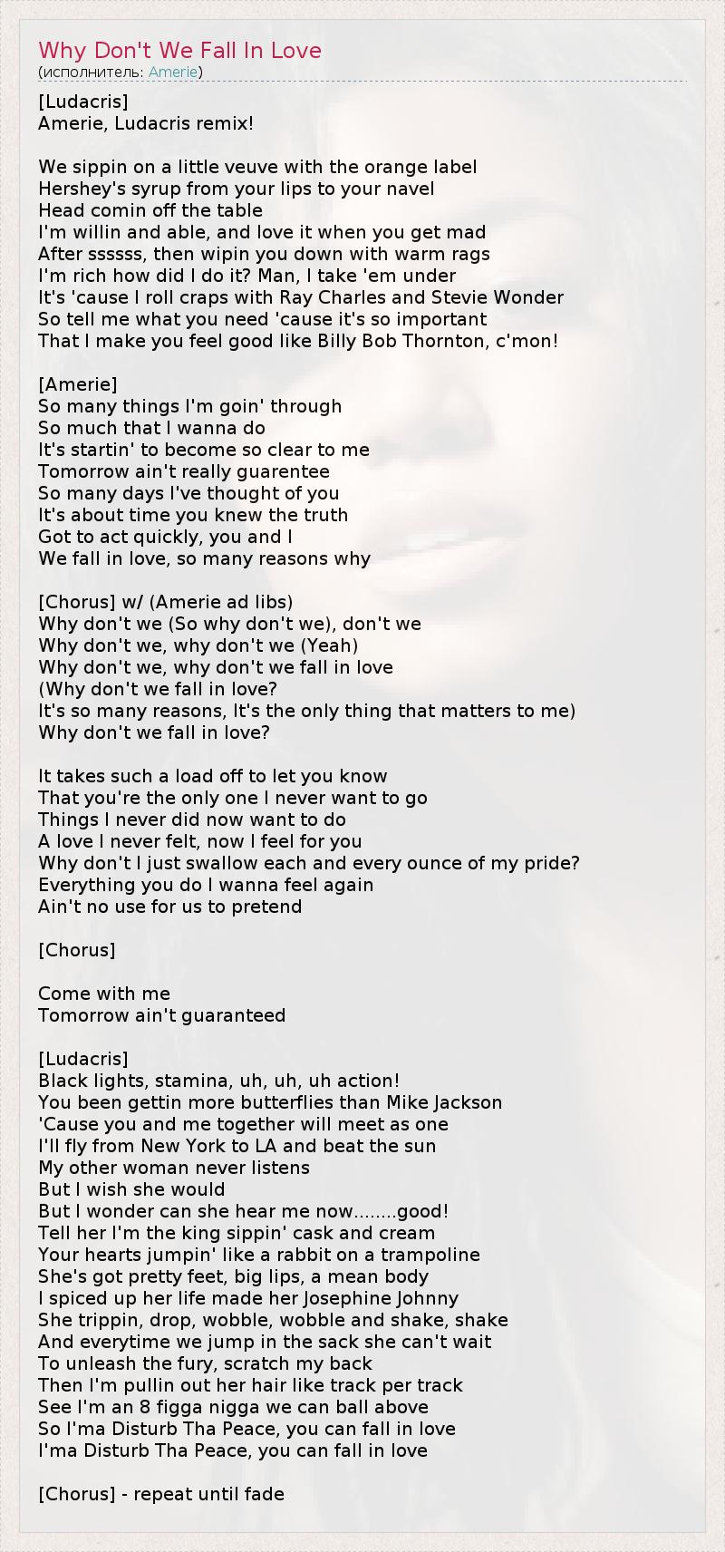 А как ты думаешь, о чем песня "Why Don't We Fall In Love" ?