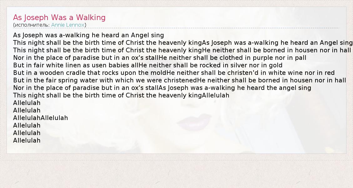 ГлавнаяИсполнителиAnnie LennoxAs Joseph Was a Walking