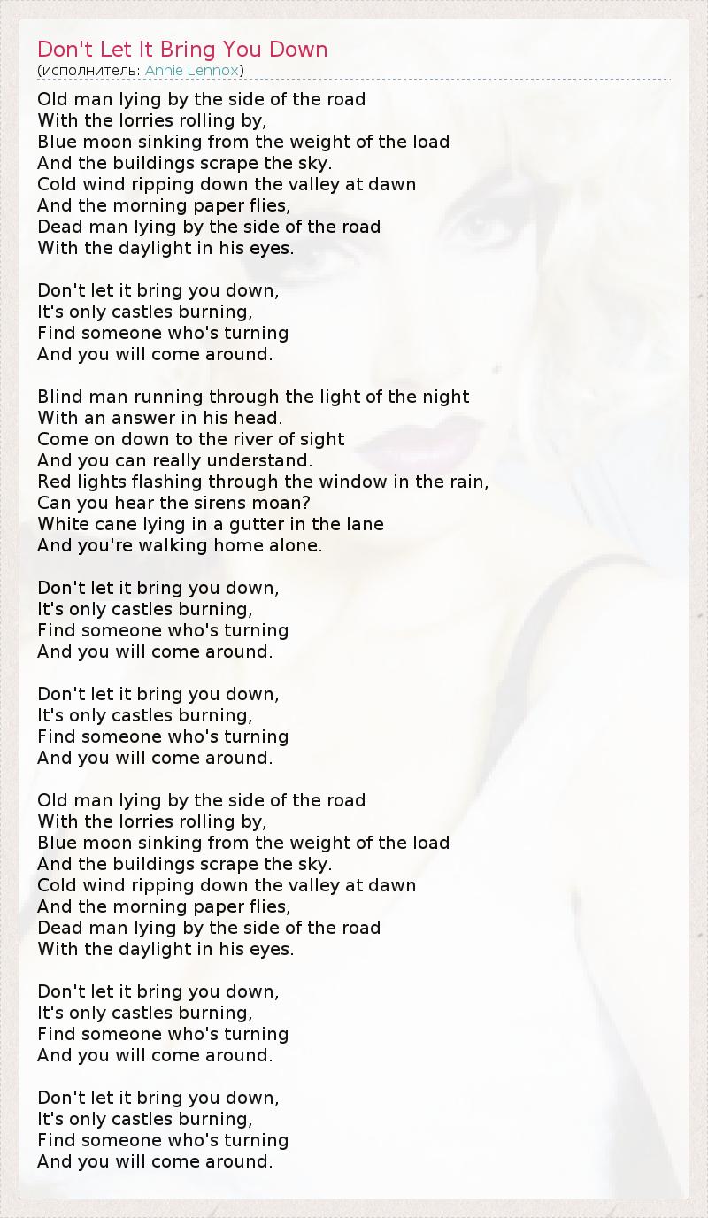 А как ты думаешь, о чем песня "Don't Let It Bring You Down" ?