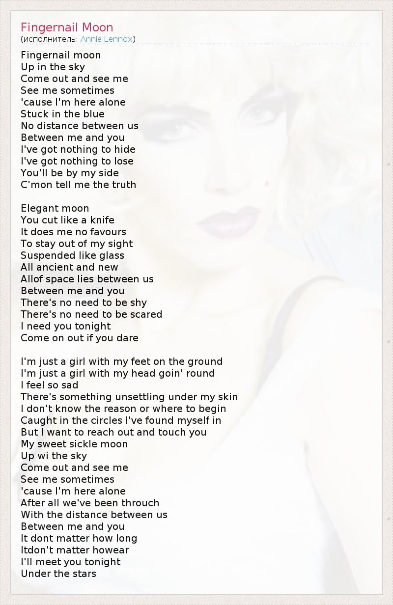 А как ты думаешь, о чем песня "Fingernail Moon" ?
