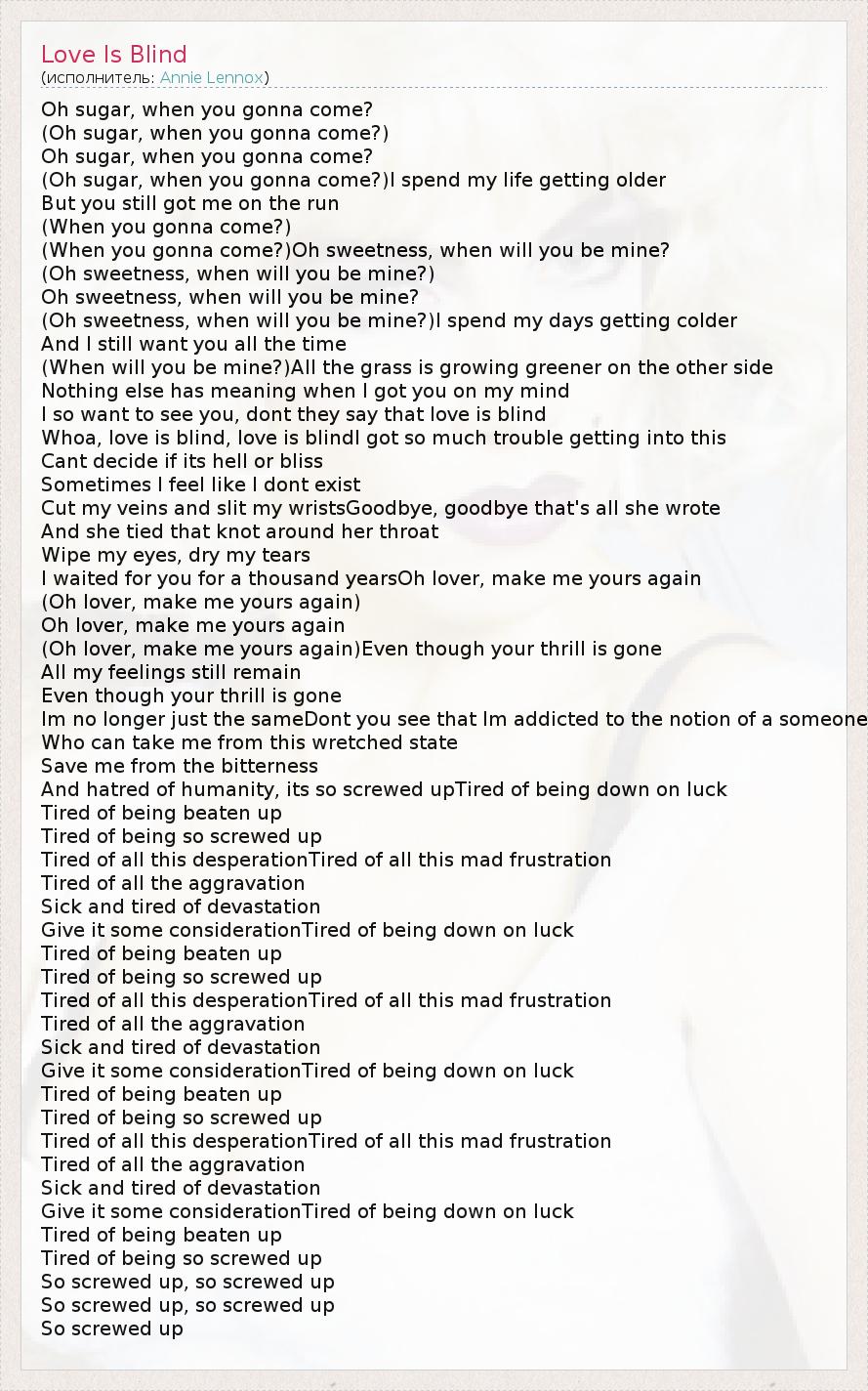 А как ты думаешь, о чем песня "Love Is Blind" ?