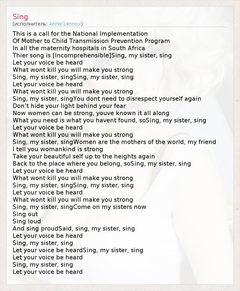 Thier song is [Incomprehensible]Sing, my sister, sing