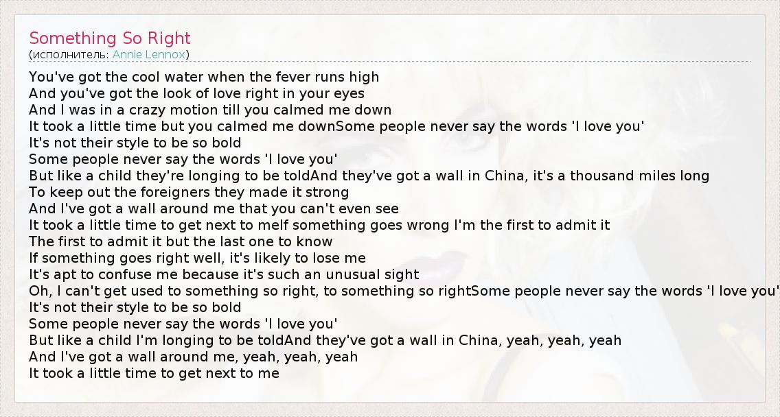 Oh, I can't get used to something so right, to something so rightSome people never say the words 'I love you'