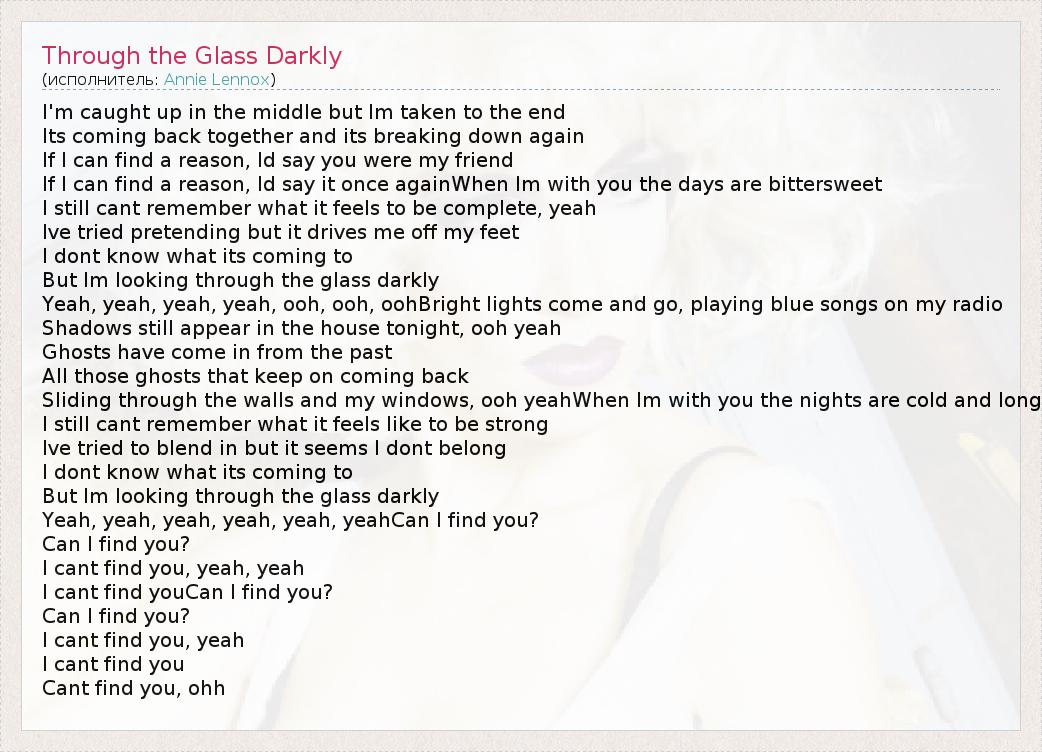 ГлавнаяИсполнителиAnnie LennoxThrough the Glass Darkly