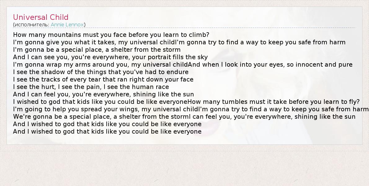 А как ты думаешь, о чем песня "Universal Child" ?