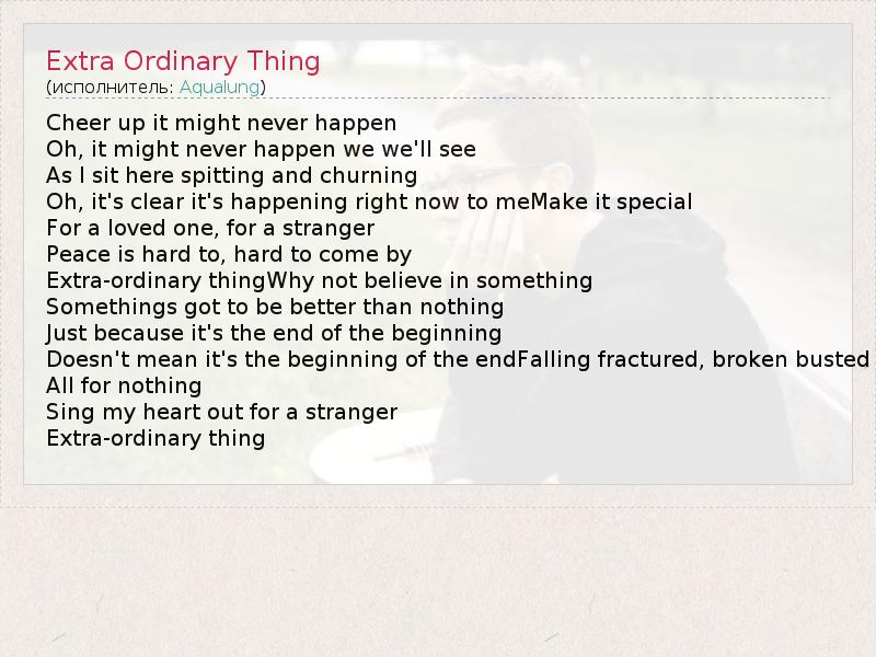 А как ты думаешь, о чем песня "Extra Ordinary Thing" ?