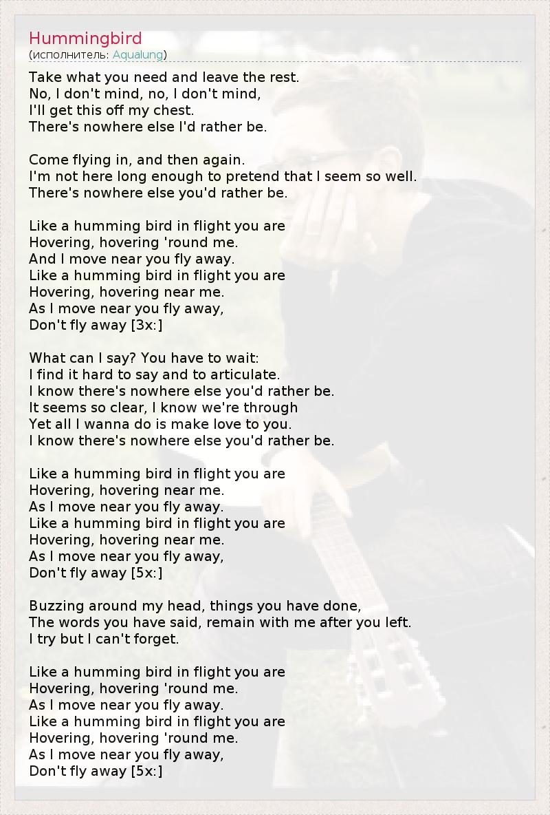 А как ты думаешь, о чем песня "Hummingbird" ?