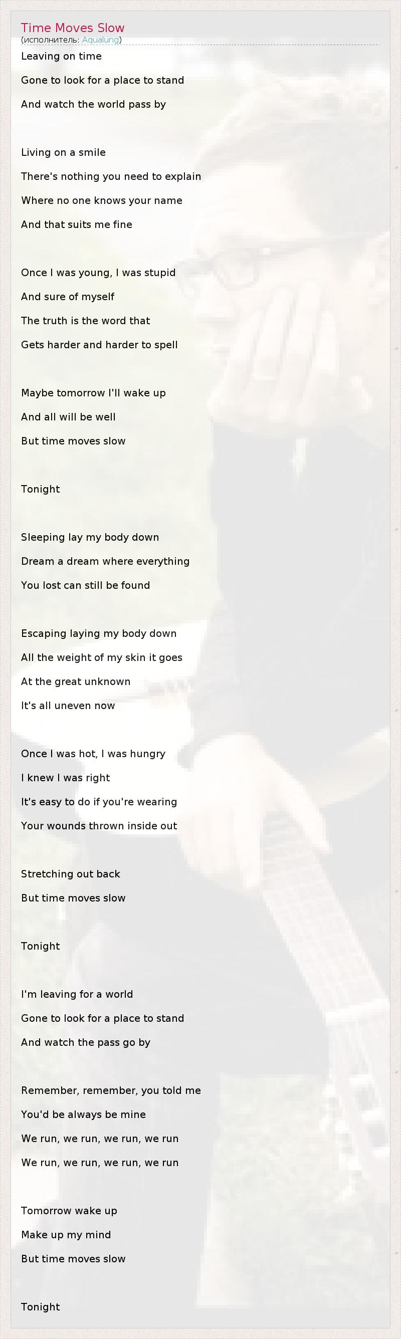 А как ты думаешь, о чем песня "Time Moves Slow" ?