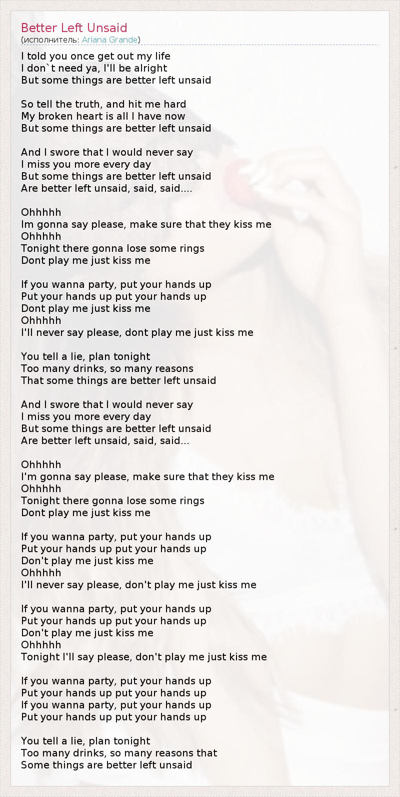 А как ты думаешь, о чем песня "Better Left Unsaid" ?
