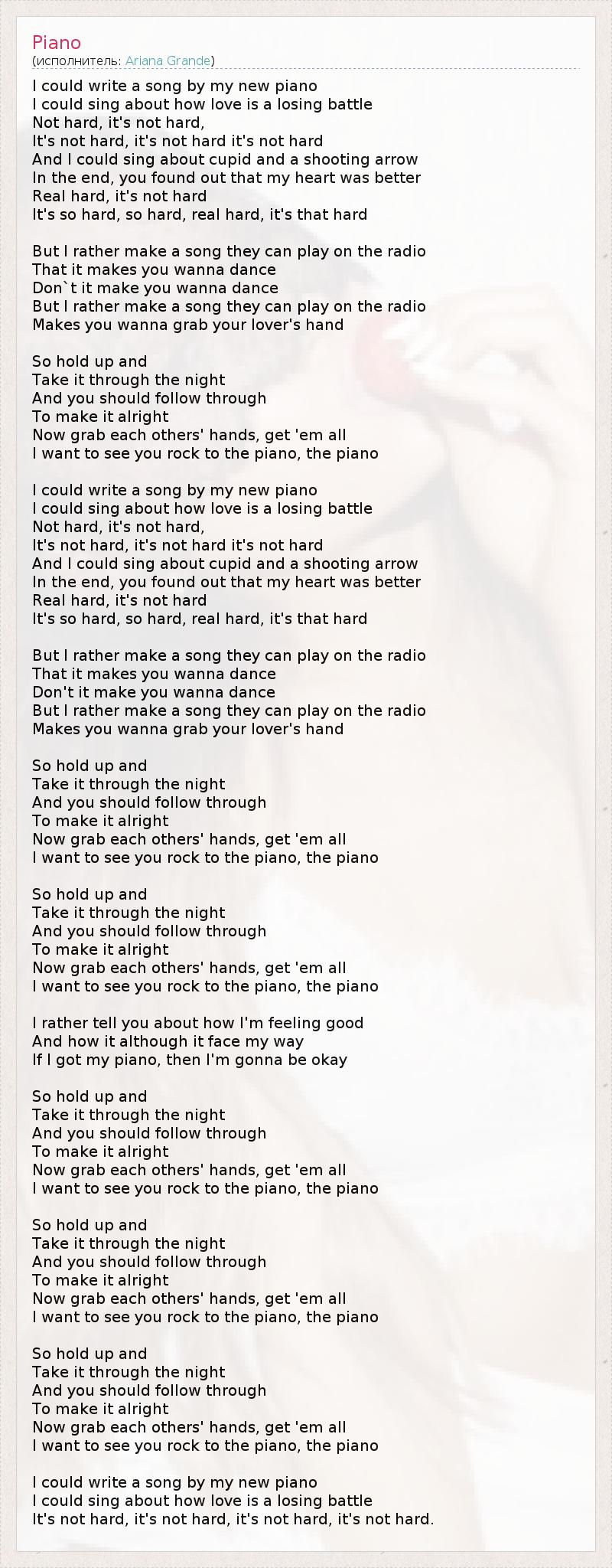И только когда я сяду за свой рояль, только тогда я буду в порядке.